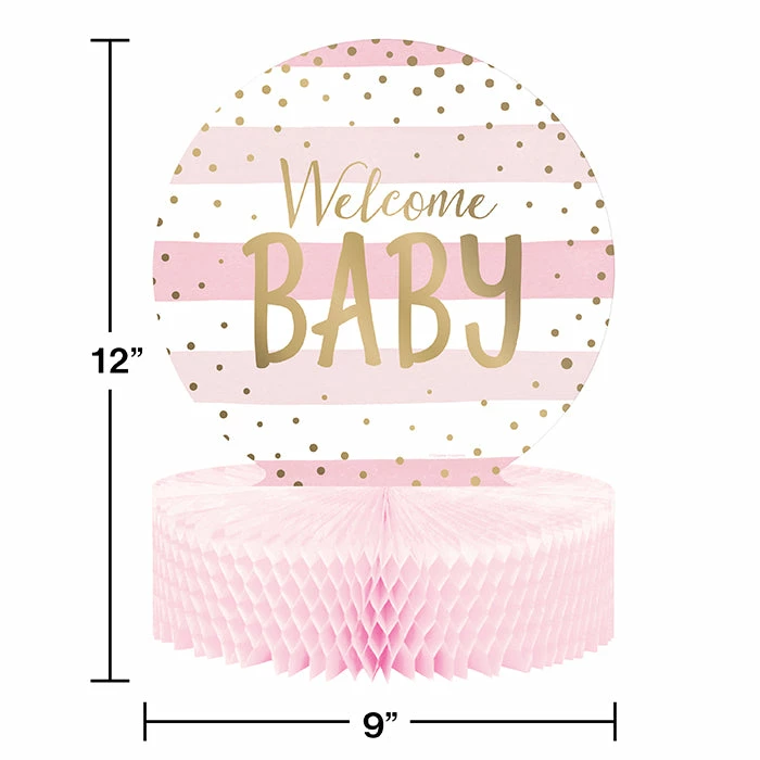 Details: Celebrate in style with this Pink and Gold Celebration Baby Shower Centerpiece. Featuring an elegant pink and gold design with the phrase “Welcome Baby” centered in the middle, these centerpieces are the perfect thing for your party tables. Measuring 9″ x 12″ these centerpieces can be paired with any other Pink and Gold Celebration party supplies. Our Pink and Gold Celebration Baby Shower Centerpieces are perfect for event planners, caterers, and home hostesses alike.