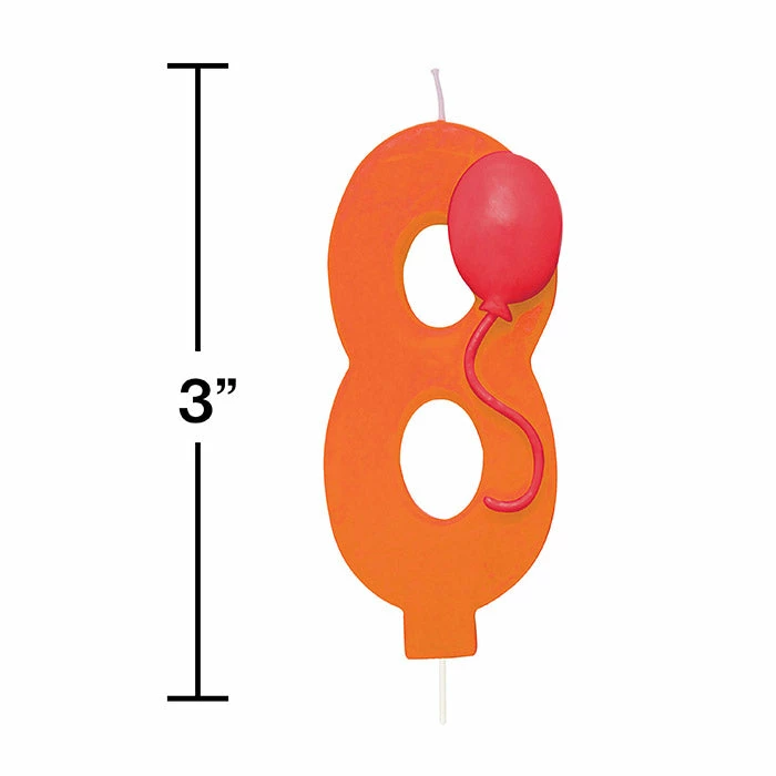 Details: Top off your birthday celebration with the #8 Balloon Candle! This cake decoration is shaped like the number zero and allows you to create a customized birthday surprise. This product is decorated with balloons. With discount pricing, our #8 Balloon Candles are perfect for event planners, caterers, and home hostesses alike. You get one #8 Balloon Candle for this price. Approximate Dimensions: 1.438 in x 3 in