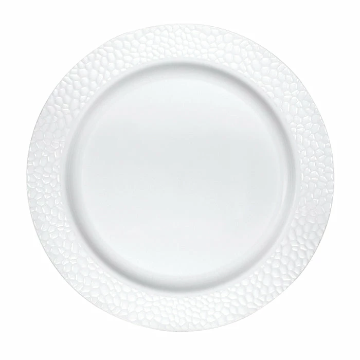 Details: Any meal looks stunning when served on the Pearl Pebble Plastic Plates. These sturdy plastic plates measure 9″ and feature a pebbled texture and a pearl theme. These disposable plastic plates coordinate with all Pearl Pebble party supplies. Our Pearl Pebble Plastic Dinner Plates are perfect for event planners, caterers, and home hostesses alike.
