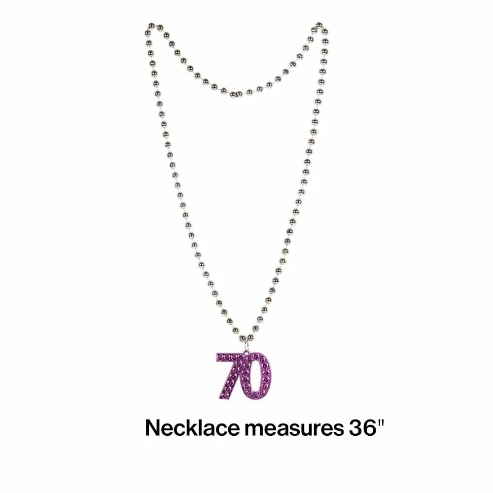 Use this (12ct) Plastic Necklace, Age 70 item along with our other Over the Hill themed birthday party supplies and decorations to create a fun birthday party celebration! You get 1 per package and 12 packages per case. Total Case count = 12. Size is 33 inches.