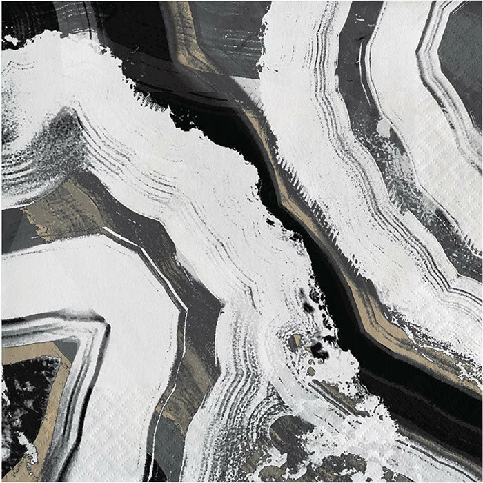Details: Wow your guests with these beautiful, marbeled Agate Napkins. The art-inspired marble design makes for an upscale addition to any celebration. With neutral black and gray tones, these napkins pair seamlessly with most dinnerware and decor throughout the home. They are made out of paper for easy clean-up so you can focus on the fun. Measuring 6.5″ and sold in packs of 16, pair with other Agate party supplies for a festive look. Our Agate Luncheon Napkins are perfect for event planners, caterers, and home hostesses alike.