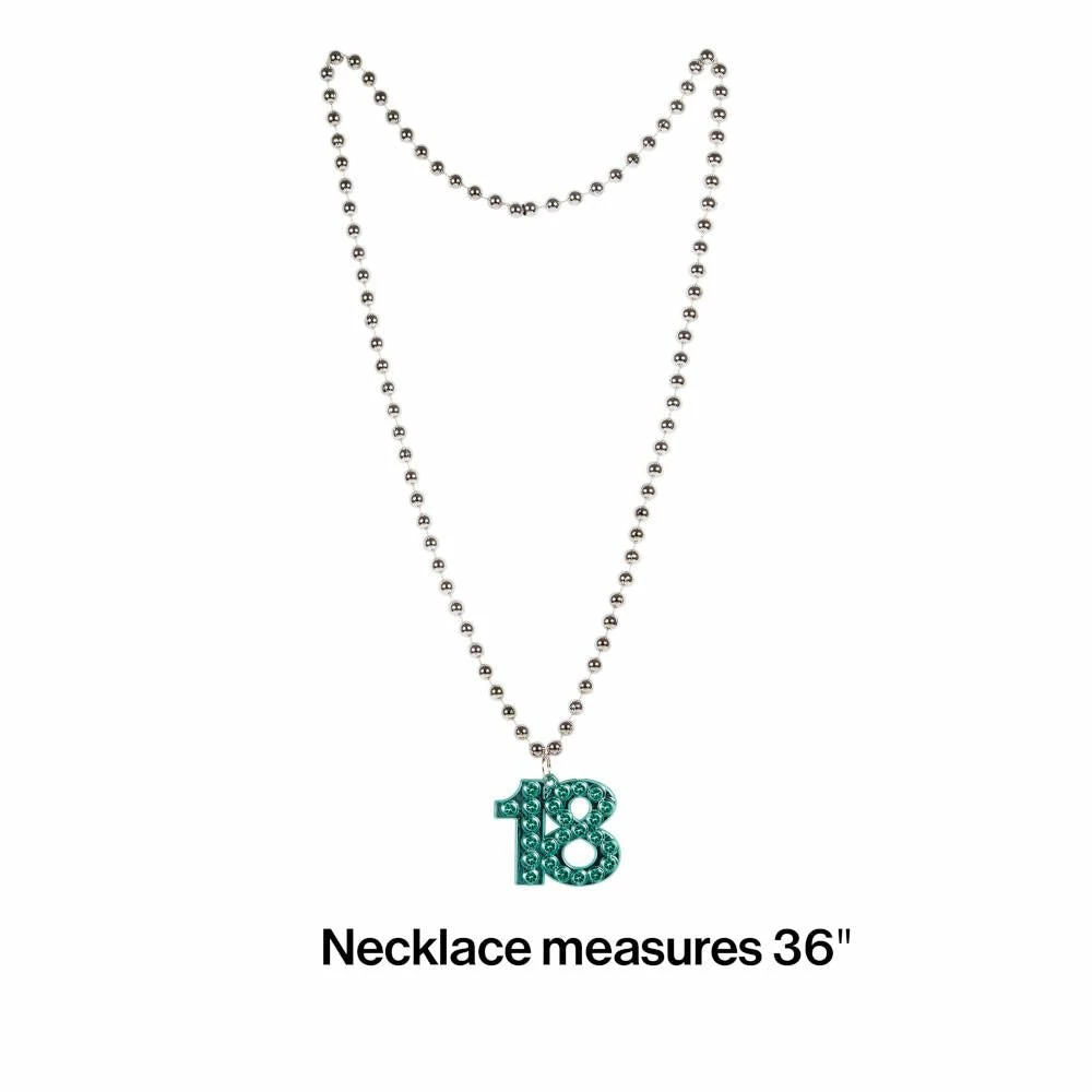 Dress the part for the milestone birthday with the 18th Birthday Beaded Necklace. This festive necklace measures 33″ and features a “18” shaped medallion. This party accessory is the perfect addition to your birthday party. With wholesale pricing and bulk quantities, our 18th Birthday Beaded Necklaces 12 ct are perfect for event planners, caterers, and home hostesses alike.