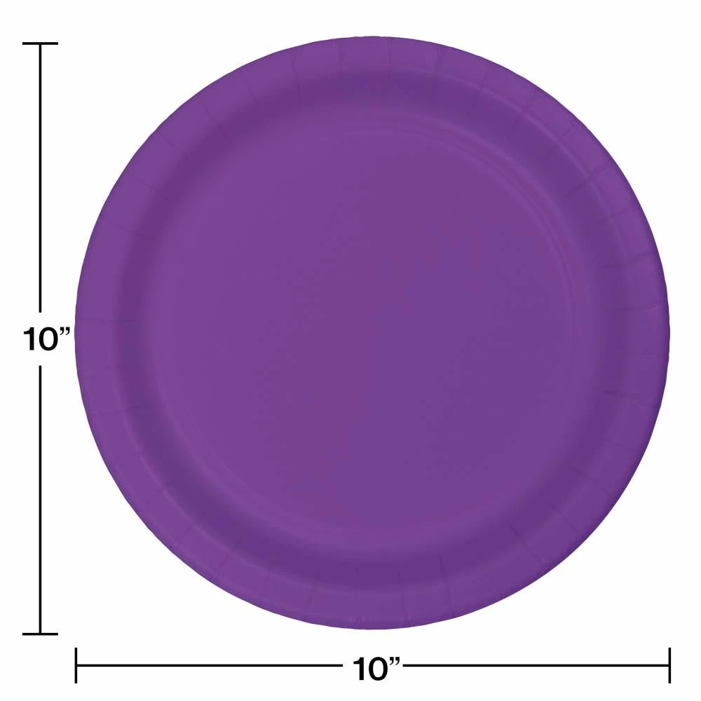Details: Add a vibrant touch of color to your table setting with our Amethyst Purple Banquet Plates. The discount paper plates are perfect for serving heartier meals. Great for celebrating social gatherings, catered events, and holiday parties, the heavy duty dinner plates are ideal for event planners, party hosts, and caterers looking for wholesale party plates. Additionally, the banquet plates are disposable for easy clean up and no worry over accidental damage or loss. The disposable paper plates can be conveniently recycled at the end of the event. For this price, you get one package containing (24) Amethyst Purple Banquet Plates. Approximate Dimensions: 10 in x 10 in