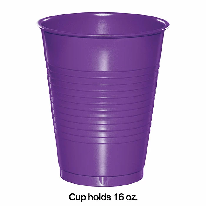 Details: Offer festive party punches or frosty cocktails in these generously sized Amethyst Purple Plastic Cups. Constructed of premium strength plastic, the 12 oz. cups are perfect for thirsty guests at any number of events and occasions. The plastic cups can be coordinated with a variety of durable disposable tableware from the complete line of Amethyst Purple party supplies. With discount pricing, our Amethyst Purple Premium Plastic Cups 16 oz are perfect for event planners, caterers, and home hostesses alike. For this price, you get one package containing (20) Amethyst Purple Plastic Cups. Approximate Dimensions: 4.5 in