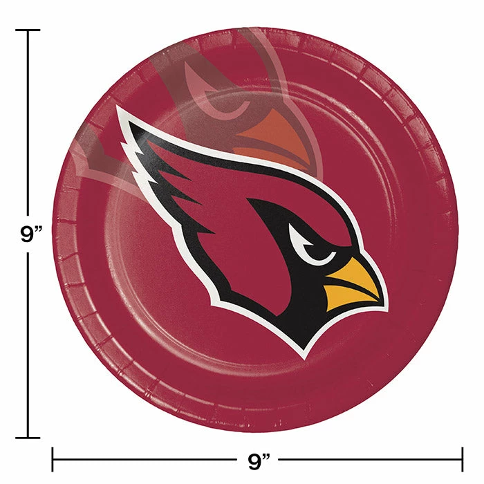 Details: Avoid a game day foul and feed fans on these festive offerings! Our officially licensed Arizona Cardinals Dinner Plates feature your favorite team’s colors and logo for the perfect addition to any tailgating event game day party or even everyday use for the super fan. The durable red heavyweight paperboard plates feature the recognizable cardinal head logo in the center with a larger transparent version in the background. Serve up pizza grilled meats sandwiches sides and any other hearty snacks with confidence. Dinner plates measure 8.75″ in diameter and are packaged in quantities of 8. Approximate Size: 8.75″. Material: Heavyweight Paperboard