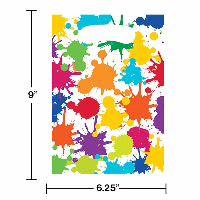 Fill your guests with joy at your kid’s birthday party with these Art Party Favor Bags. These plastic goodie bags measure 9″ x 6.5″ which will give party goers more than enough room for all the treats you have in store for them. The favor bag features a colorful paint splash display. With wholesale pricing and bulk quantities, our Art Party Favor Bags 96 ct are perfect for event planners, caterers, and home hostesses alike.