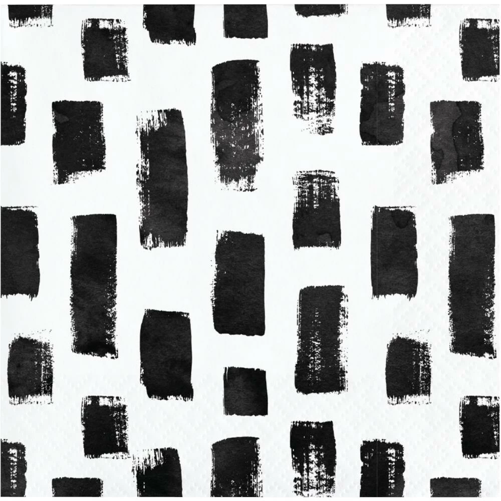 Details: The artistic brush strokes of the Black and White Mod Beverage Napkins are ideal for your favorite martini. These 3-ply cocktail napkins measure 5″ and feature an abstract pattern of rectangles with a black and white theme. Sold in packs of 24, these disposable paper napkins coordinate with all Black and White Mod party supplies. Save more on party decorations, party favors and party supplies at PartyDecorations.com!. Material: Tissue. Approximate Size/Dimensions (inches): 5 x 5.
