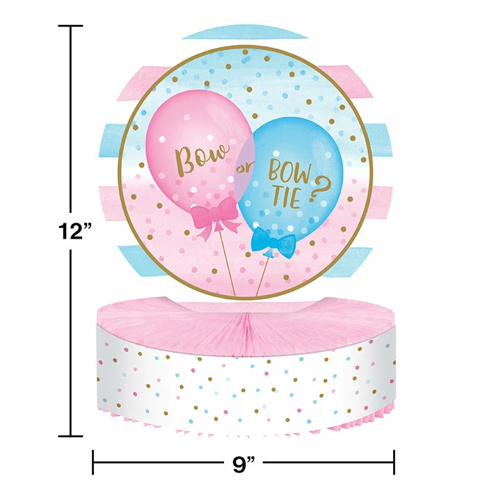 Details: Celebrate the new baby to be with the Gender Reveal Balloons Centerpiece. Measuring 9″ x 12″, the decoration features a pink balloon that says “Bow or” and a blue balloon that says “Bow Tie?”. This centerpiece can be coordinated with any of our other Gender Reveal Balloons party supplies. With discount pricing, our Gender Reveal Balloons Centerpieces are perfect for event planners, caterers, and home hostesses alike. You get one Gender Reveal Balloons Centerpiece for this price. Approximate Dimensions: 9 in x 9 in x 12 in