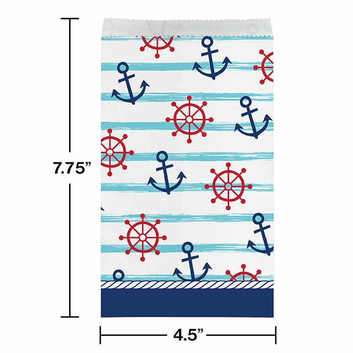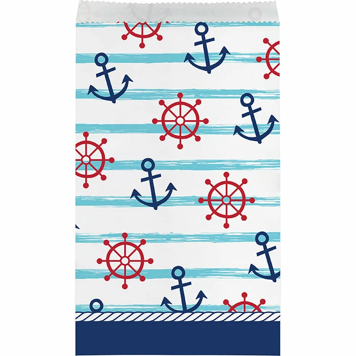 The Nautical Baby Shower Paper Treat Bags are the perfect way to send your guests home with a memento from an incredible party. These paper treat bags measure 7.75″ x 4.5″ and feature anchors and captains wheels with a blue, white, and red theme. Sold in packs of 96, these paper treat bags coordinate with all Nautical Baby Shower party supplies. With wholesale pricing and bulk quantities, our Nautical Baby Shower Paper Treat Bags 96 ct are perfect for event planners, caterers, and home hostesses alike.