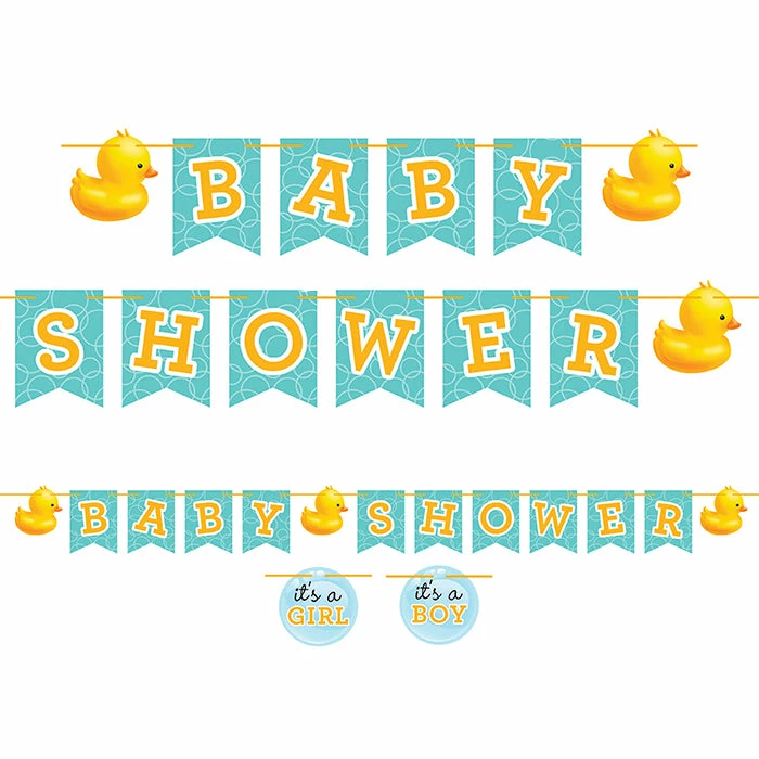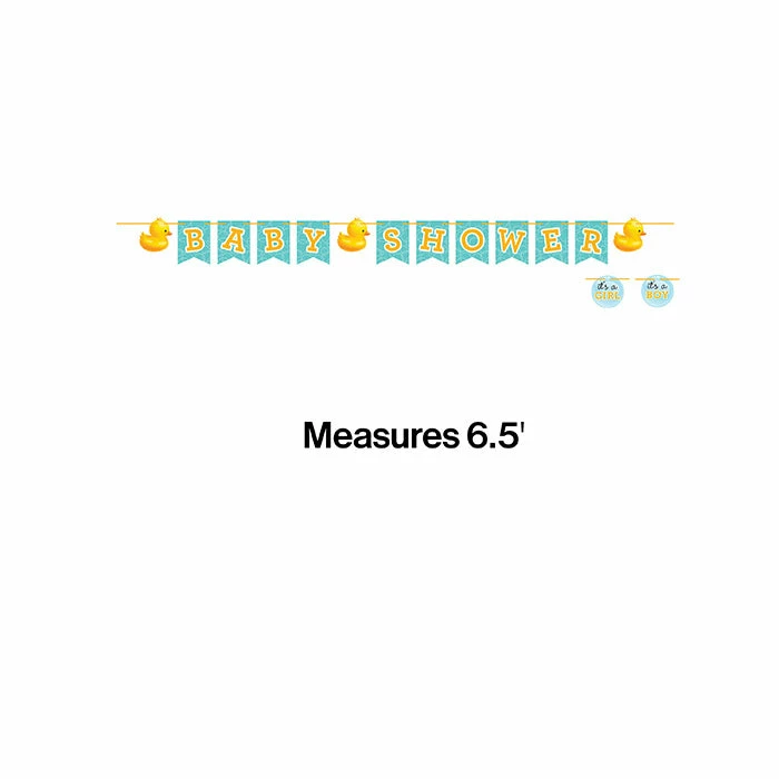 Details: Make a big, bold statement! Add these adorable ribbon banners to your party supplies. A must-have party supply for boys or girls baby showers, hang them on the wall behind party tables or on any wall where the party is happening, indoor or outdoor. These banners are a perfect match with all the party supplies and decorations in our Bubble Bath baby shower collection.. You get one Rubber Duck Bubble Bath Ribbon Banner for this price. Approximate Dimensions: 78 in x 6 in