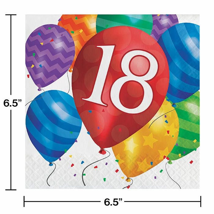 Celebrate that extra special birthday and decorate with these (192ct) Balloon Blast Lunch Napkins, 18th Birthday. 16 per package and 12 packages per case. You get one case for this price.