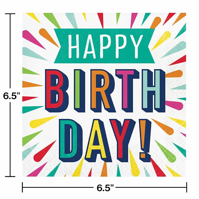 Details: Celebrate your birthday with a bang when you use the Birthday Burst Napkins. These 2-ply napkins measure 6.5″ and feature a multicolored theme and the words “Happy Birthday!”. These disposable paper napkins coordinate with all Birthday Burst party supplies. Our Birthday Burst Luncheon Napkins are perfect for event planners, caterers, and home hostesses alike.