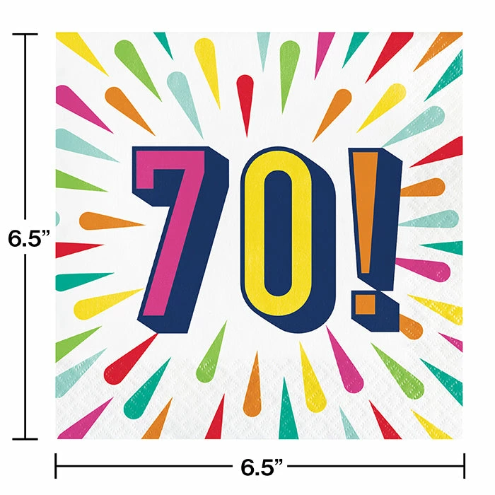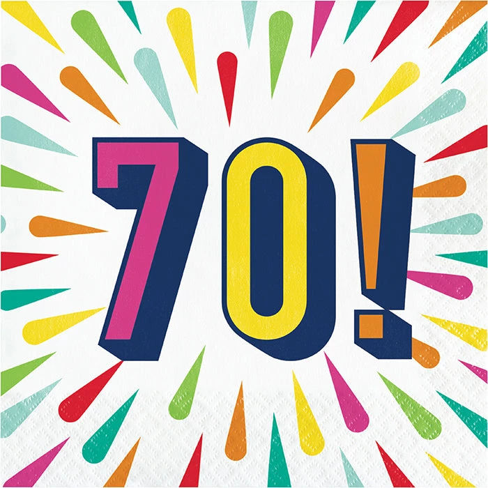 Details: Add a festive splash of color to your milestone birthday party when you serve a meal with the Birthday Burst 70 Napkins. These 2-ply napkins measure 6.5″ and feature a multicolored theme and a large “70!”. These disposable paper napkins coordinate with all Birthday Burst party supplies. Our Birthday Burst 70 Luncheon Napkins are perfect for event planners, caterers, and home hostesses alike.