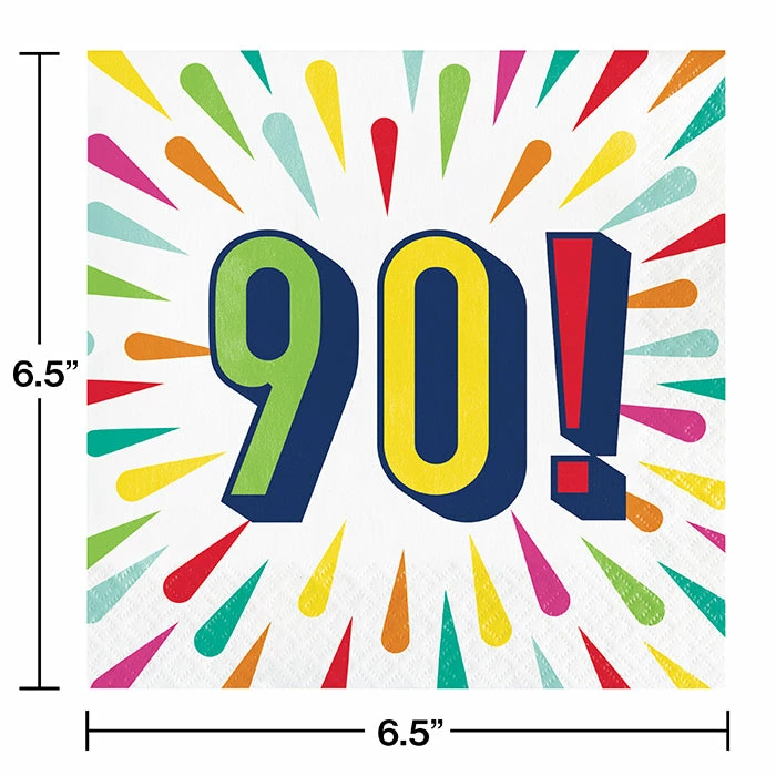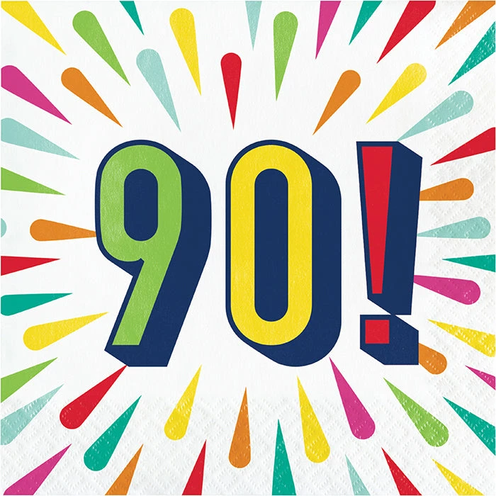 Details: Add a touch of color to your celebration with these Birthday Burst 90 Napkins. Featuring a colorful teardrop design with “90” centered in the middle, these napkins are the perfect addition to your celebration. Measuring 6.5″ these napkins can be paired with any other Birthday Burst party supplies. Our Birthday Burst 90 Luncheon Napkins are perfect for event planners, caterers, and home hostesses alike.