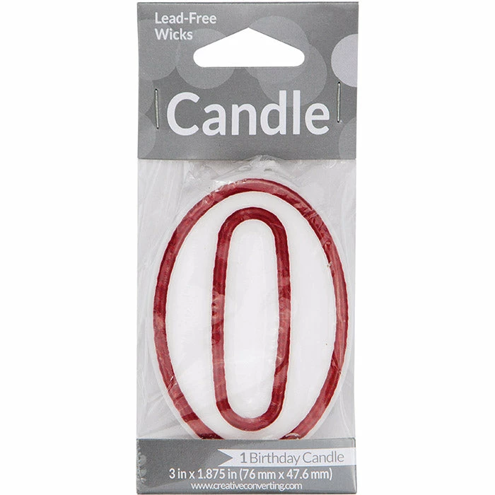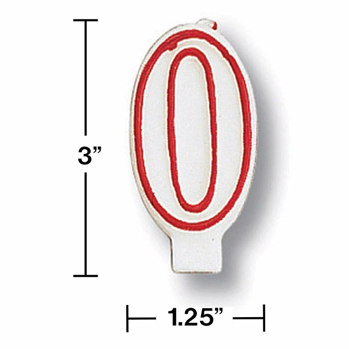 Details: Top off your birthday celebration with the #0 Candle! This cake decoration is shaped like the number zero and allows you to create a customized birthday surprise. This product is decorated with a red outline and white center. With discount pricing, our #0 Candles are perfect for event planners, caterers, and home hostesses alike. You get one #0 Candle for this price. Approximate Dimensions: 1.75 in x 2.875 in