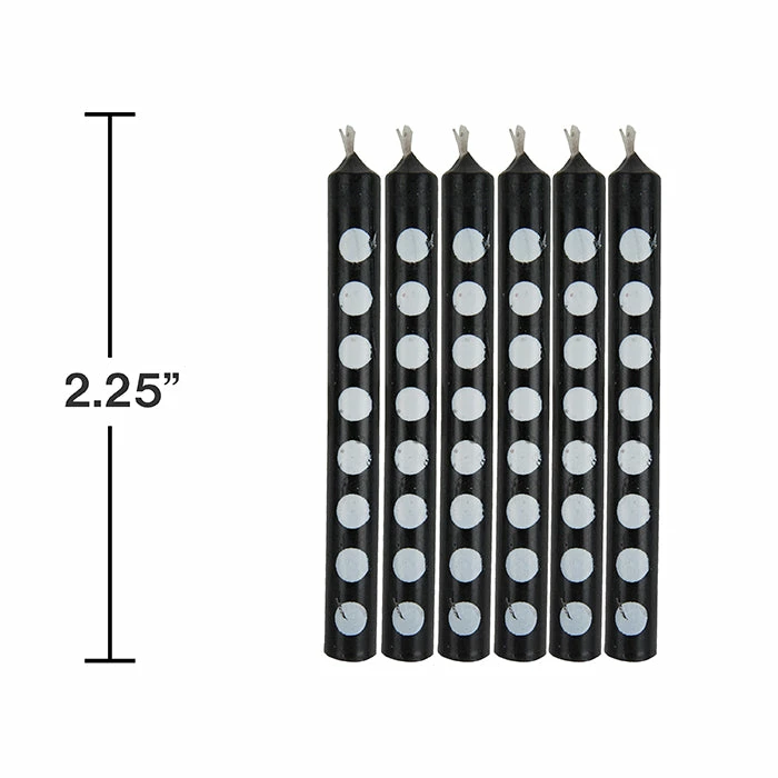 Top off the birthday cake with these Black Dot Candles that are perfect for all ages. Measuring 1.5″, these birthday candles are sure to dazzle all party goers and bring a smile to the special birthday honoree. These candles pair nicely with other black and white party decorations. With wholesale pricing and bulk quantities, our Black Polka Dot Candles 72 ct are perfect for event planners, caterers, and home hostesses alike.