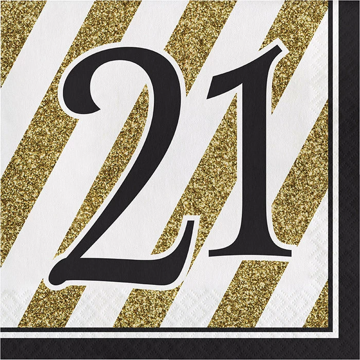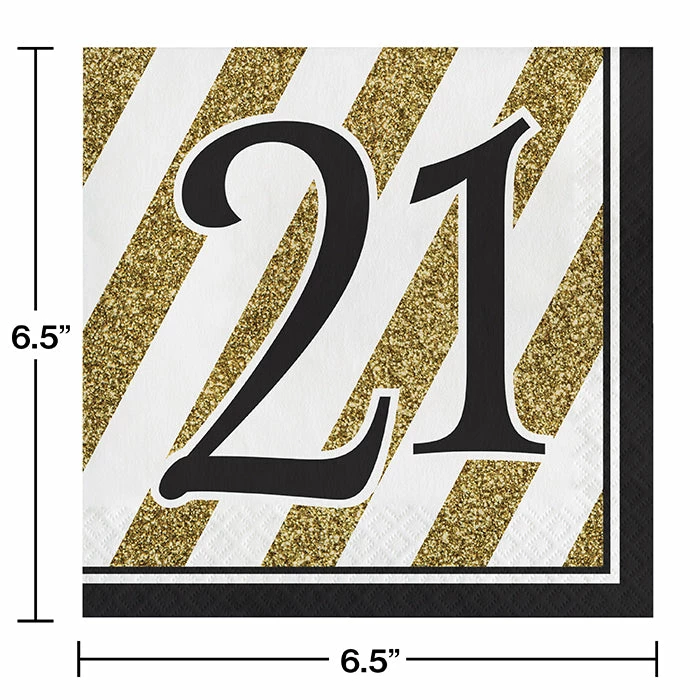 Details: Turning 21 years old is a big deal so be sure to celebrate the milestone birthday with the Black & Gold 21st Birthday Napkins. The durable napkins measure 6.5″ square and feature a fun gold and white striped design overlapped with the number 21. These luncheon size napkins are perfect for celebrating the big birthday! With discount pricing, our Black and Gold 21st Birthday Luncheon Napkins are perfect for event planners, caterers, and home hostesses alike. For this price, you get one package containing (16) Black And Gold 21st Birthday Napkins. Approximate Dimensions: 6.4 in x 6.4 in