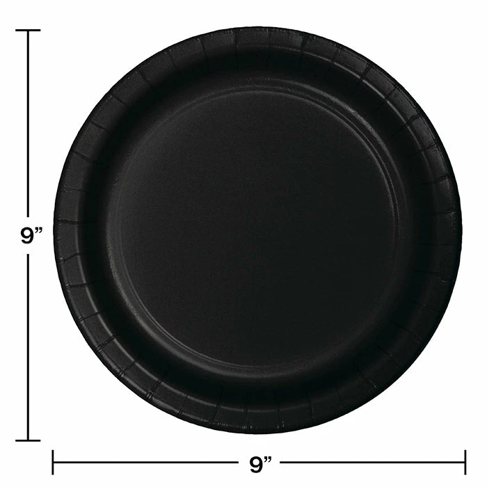 Details: Celebrate in style with our wholesale Black Velvet Dinner Plates. These sturdy, velvety black plates are adored by customers and guests for their festive color, sturdiness and disposability. Our black disposable plates offer fast clean-up, making them Ideal for any large celebration. These black dinner plates can be easily thrown away or recycled at the end of an event. Use our Black Velvet Dinner Plates to ensure that guests stay tidy while they eat. These black paper plates are sold are sold with discount pricing. For this price, you get one package containing (75) Black Paper Plates. Approximate Dimensions: 8.75 in x 8.75 in