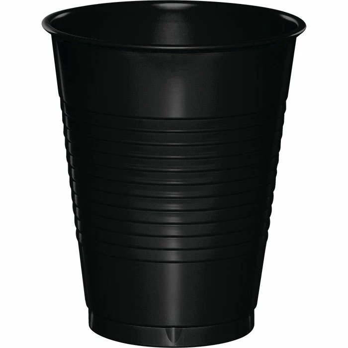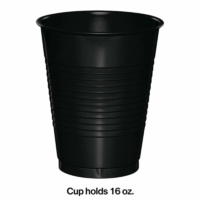 Details: The 16 oz Black Velvet Cups from our Touch of Color collection is manufactured in a heavy weight black plastic color to create a uniform look with all the Black Velvet party supplies. A rolled rim is designed at the top edge of its elegant tapered shape. Each black cup is perfect for serving up to 16 ounces of cold beverages at weddings, corporate functions and family gathering and makes an economical choice at events that require a disposable substitute for the real thing. The 16 ounce Black Velvet plastic cups retail 20 cups per package. For this price, you get one package containing (20) Black Plastic Cups. Approximate Dimensions: 4.5 in