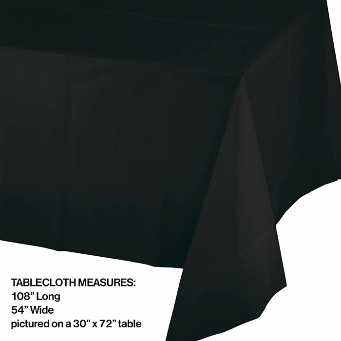Details: The Black Velvet Plastic table covers from our Touch of Color collection is manufactured to coordinate with all the Black Velvet party supplies to create a sophisticated and classy scene. The solid black plastic table cover offers an economical option to cover tables at events that require a disposable solution for table linens. The high quality rectangular table cover measures 54 inches wide x 108 inches long and fits a standard 8 foot banquet table. The Black Velvet plastic table cover retails 1 table covers per package and is sold at a discount price. You get one Black Velvet Tablecover Plastic 54″ X 108″ for this price. Approximate Dimensions: 108 in x 54 in