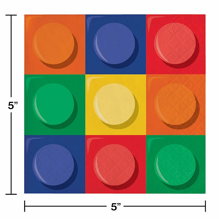 Details: Set the scene for a child’s birthday with boldly colored lock blocks printed on the wholesale Block Party Beverage Napkins. Perfect for wiping messy fingers, holding a tasty cupcake or using as a coaster, these absorbent paper napkins are so much fun to mix with all the discount block party birthday supplies for an energetic and colorful celebration. For this price, you get one package containing (16) Block Party Beverage Napkins. Approximate Dimensions: 5 in x 5 in