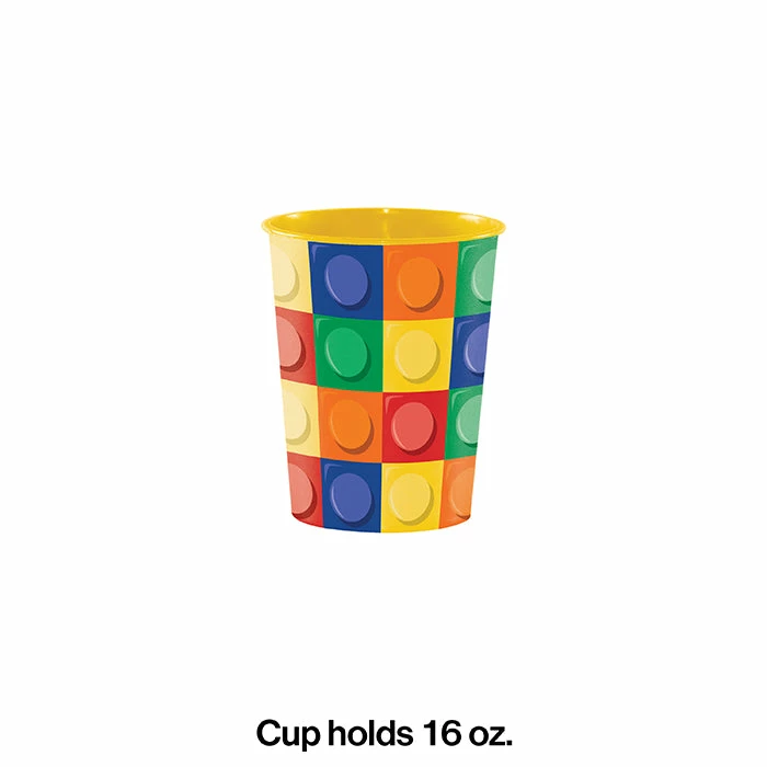 Details: Construct an awesome scene with the brightly colored wholesale Block Party Favor Cups filled with trinkets and treats for guests. The sturdy plastic cup is decorated with the same lock block pattern found on the discount block party birthday supplies so that all the tableware coordinates. The containers can also be used to hold rolled napkins, utensils, straws or even cold beverages. You get one Block Party Plastic Keepsake Cup 16 Oz. for this price. Approximate Dimensions: 4.5 in