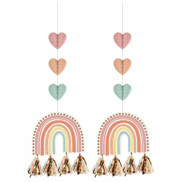 Details: If you want to design a Pinterest-worthy party, then these Boho Rainbow Hanging Cutouts are for you. Measuring 36″, these easy-to-use hanging decorations include colorful honeycomb hearts, a charming rainbow, and sparkling metallic tassels. Sold in packs of 2, each hanging cutout can be paired with any other Boho Rainbow party supplies. Hang these above tables and throughout your party space to create a magical ambiance for your baby shower or little one’s first birthday party. Our Boho Rainbow Hanging Cutouts are perfect for event planners, caterers, and home hostesses alike.