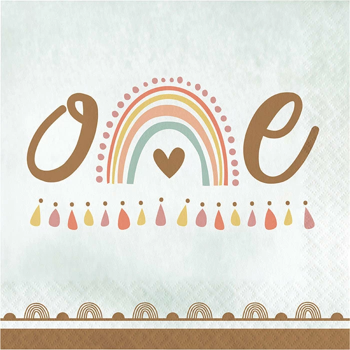 Details: Make your little one’s first birthday a bash to remember with these Boho Rainbow 1st Birthday Napkins. Measuring 6.5 inches, these napkins are illustrated with the word one and feature a lovely little rainbow design as the n. Sold in packs of 16, these 1st birthday napkins can be paired with any other Boho Rainbow party supplies and are a festive and fun way to commemorate this milestone in your and your baby’s lives. Our Boho Rainbow 1st Birthday Luncheon Napkins are perfect for event planners, caterers, and home hostesses alike.