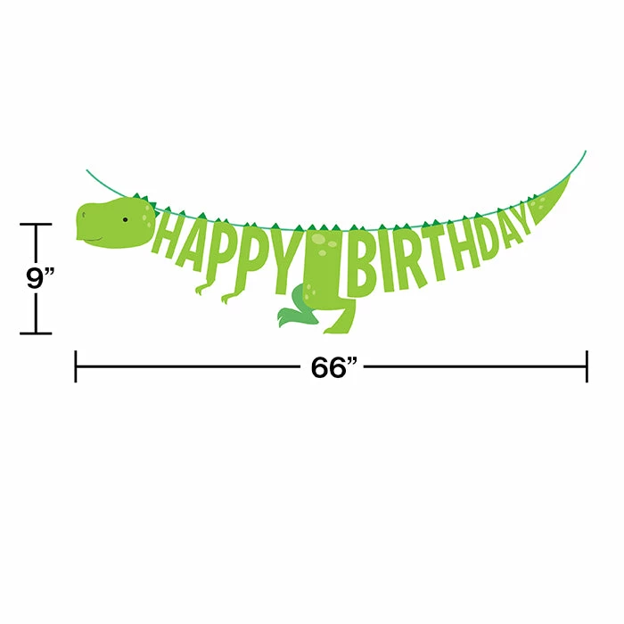 Details: Decorate your celebration perfectly with this Boy Dinosaur Banner. Featuring a lime green color with the phrase “Happy Birthday” spelled out in a unique dino design, this banner is the perfect addition to your celebration. Measuring 6″ x 66″ this banner can be paired with any other Boy Dino party supplies. Our Boy Dinosaur Banners are perfect for event planners, caterers, and home hostesses alike.