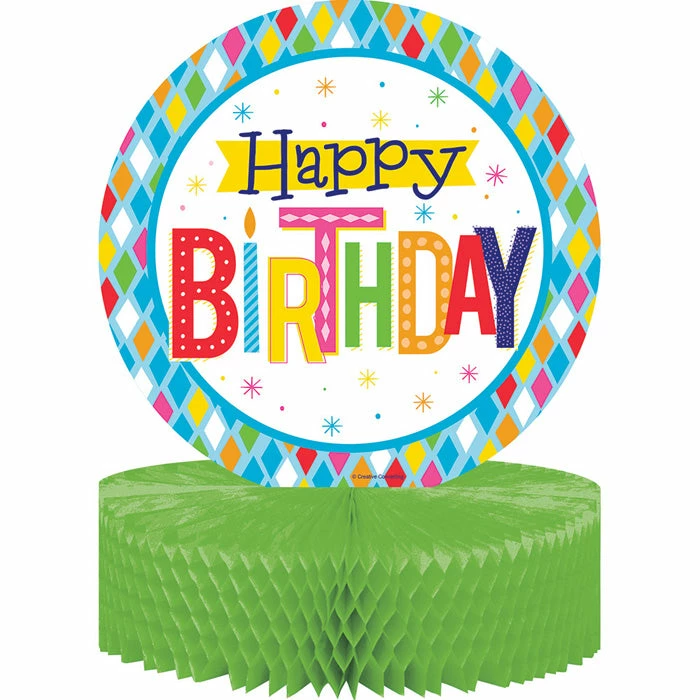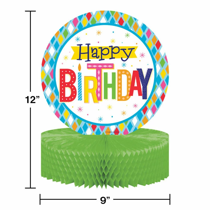 Details: You get one Bright Birthday Centerpiece for this price. Approximate Dimensions: 9 in x 9 in x 12 in. Accessorize your table with this Bright Birthday Centerpiece. Featuring a colorful “Happy Birthday” pop up on a green honeycomb base, this centerpiece is the perfect addition to any birthday celebration. Measuring 9″ x 12″, this centerpiece can be paired with any other Bright Birthday party supplies. Our Bright Birthday Centerpieces are perfect for event planners, caterers, and home hostesses alike.