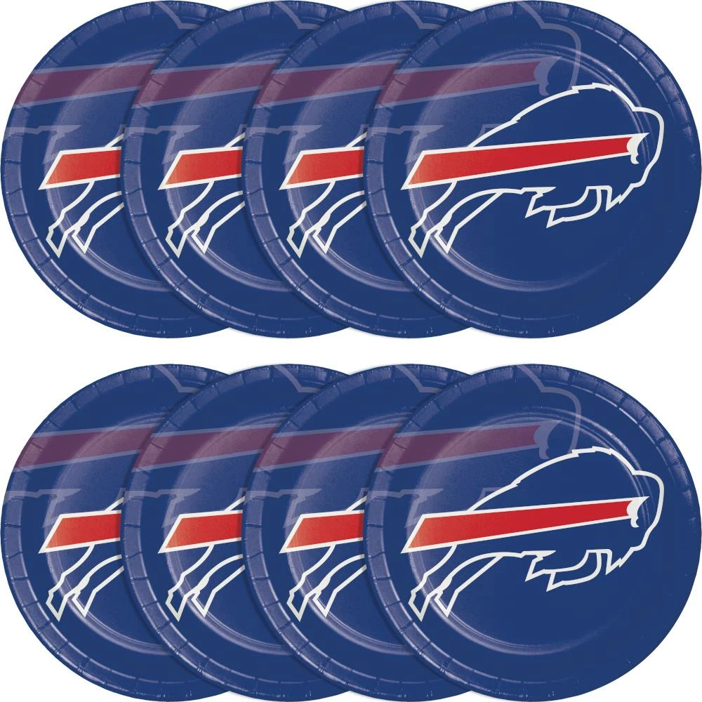 Details: Prepare fans for kickoff with these Buffalo Bills Dinner Plates. Stock up on the most popular NFL supplies for the season starting with our selection of paper plates. These Bills paper plates highlight the team logo and red and blue colors. Sturdy and functional these disposable plates coordinate perfectly with our Buffalo Bills party supplies and are a great addition to any football party. Approximate Size: 8.75″. Material: Heavyweight Paperboard