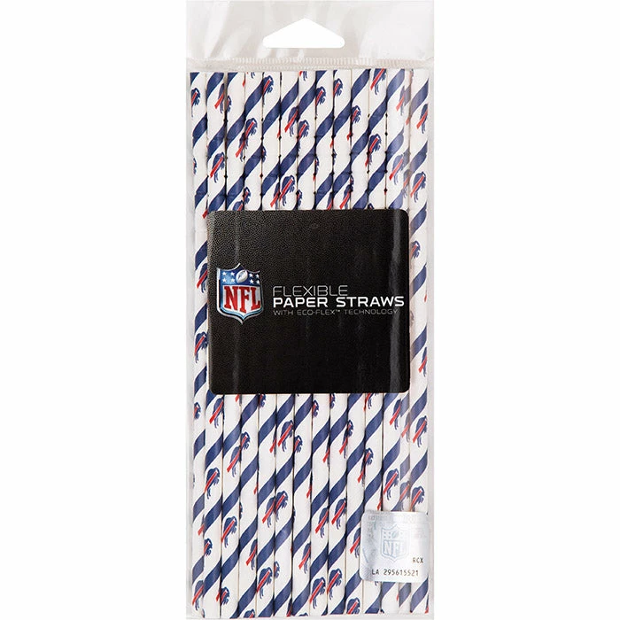 Details: Football season has arrived! These Buffalo Bills Straws are designed with details that coordinate with the Bills team logo and colors. They make the perfect sippers for gameday Barbecues tailgating parties or viewing parties. Stock up on these paper straws in addition to our collection of Buffalo Bills party supplies for football season. Fans will love to use the straws in their cold beverages and cocktails for the maximum fan experience. Approximate Size: 7.75″. Material: Biodegradable 100% Chlorine Free Paper