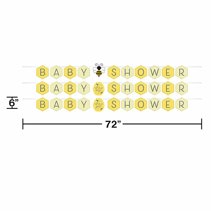 Details: You get one Bumblebee Baby Banner for this price. Approximate Dimensions: 66 in x 6 in. Welcome your guests with this Bumblebee Baby Shower Banner! Featuring a honeycomb design with the phrase “Baby Shower” centered in the middle, this banner is the perfect decoration for your celebration. Measuring 6″ x 74″, this banner can be paired with any other Bumblebee Baby party supplies. Our Bumblebee Baby Shower Banners are perfect for event planners, caterers, and home hostesses alike.