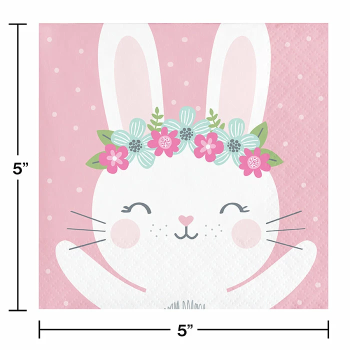 Details: Throw a hoppin’ event with the Bunny Party Beverage Napkins. These beautiful 5″ party napkins display a light pink background that is covered with white dots and a cute bunny wearing flowers on her head. These disposable napkins perfectly accentuate other Bunny Party party supplies. With discount pricing, our Bunny Party Beverage Napkins are perfect for event planners, caterers, and home hostesses alike. For this price, you get one package containing (16) Bunny Party Beverage Napkins. Approximate Dimensions: 5 in x 5 in
