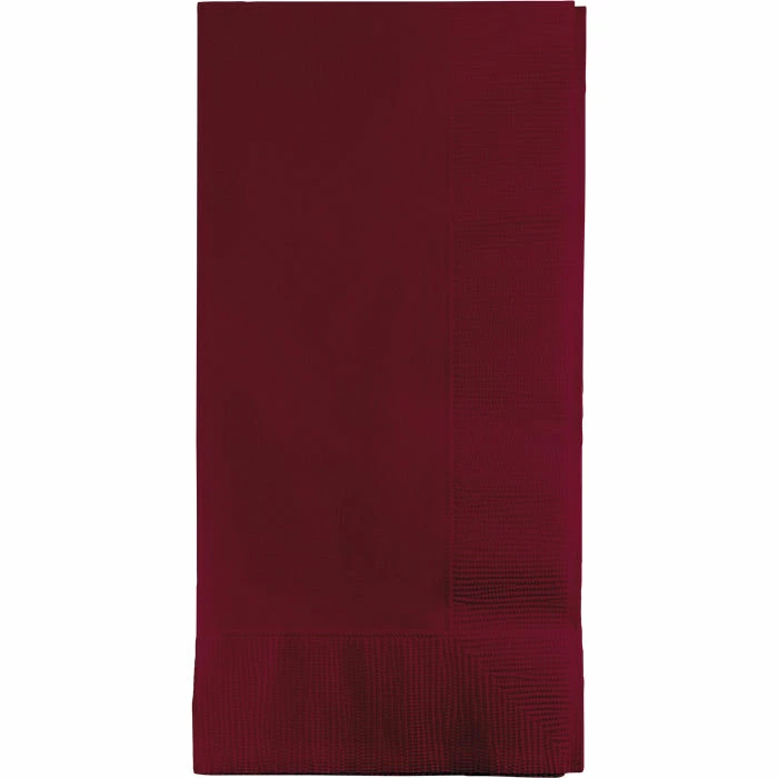 Details: The Burgundy Dinner Napkins from our Touch of Color collection feature an extraordinary color match consistency on each manufactured package. The high quality napkin features a beautiful red wine shade on its soft 2-ply material and folded measures 4 inches x 8 inches. An embossed coin edge pattern on two of the napkin edges complete the classy look. The high count napkin package makes them perfect for hosting larger events like weddings, family reunions and company events. The Burgundy Dinner Napkins retail 50 napkins per package. For this price, you get one package containing (50) Burgundy Dinner Napkins 2Ply 1/8 Fold. Approximate Dimensions: 8 in x 4 in