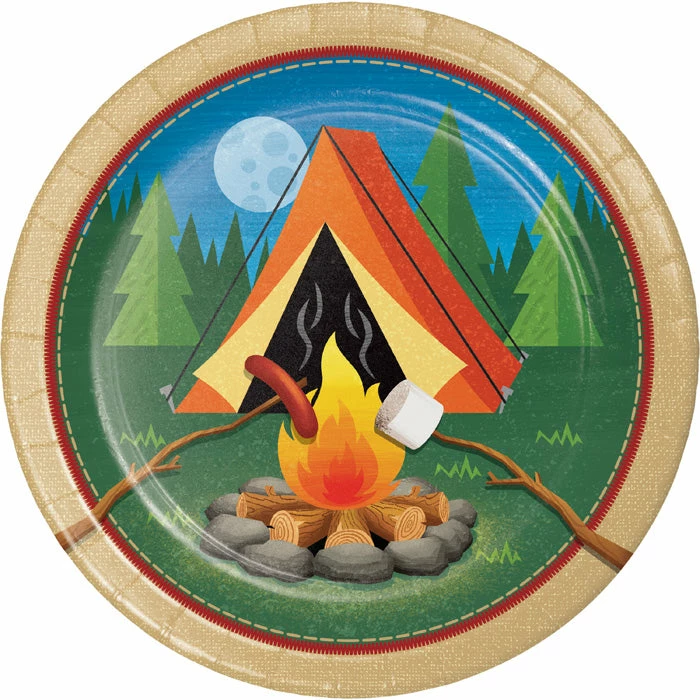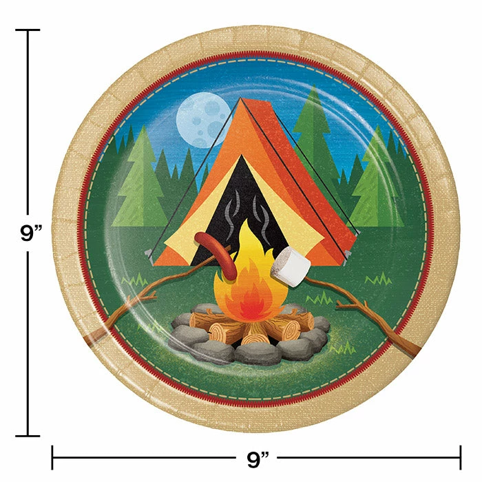 Details: The Camping Dinner Plates show a forest camping scene complete with pine trees, a tent, a campfire and woodland animals. These round paper plates measure 9″. Add some outdoor fun to your party with Happy Campers Dinner Plates. With discount pricing, our Camping Dinner Plates are perfect for event planners, caterers, and home hostesses alike. For this price, you get one package containing (8) Camping Paper Plates. Approximate Dimensions: 8.75 in x 8.75 in