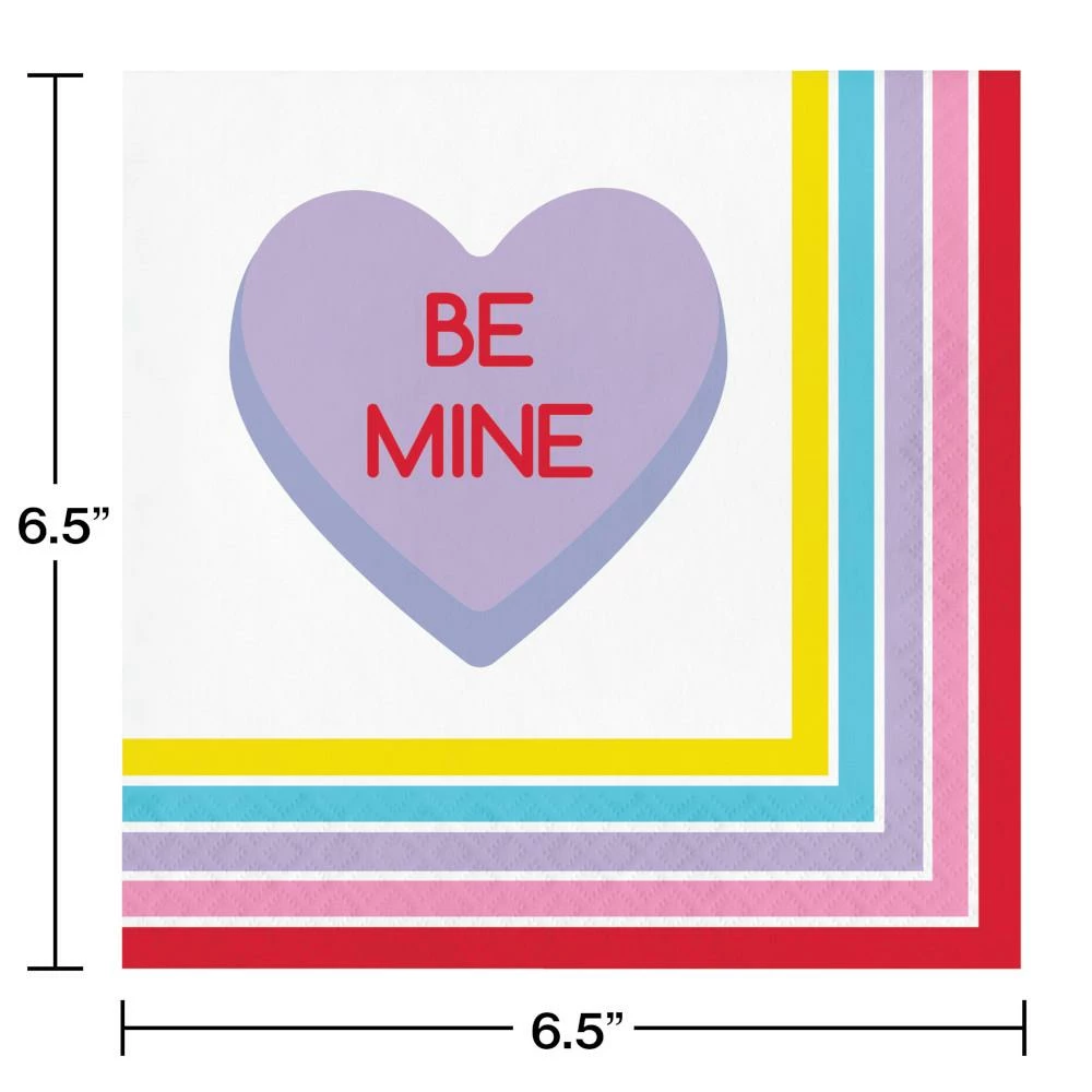 Select a sweet napkin for your Valentine’s Day gathering with our Candy Hearts Valentine’s Day Napkins. These soft, 2-ply napkins measure 6.5″, perfect for serving your favorite party foods. They feature a conversation heart candy with the classic “Be Mine” phrase. Bright candy colors complete the look. Sold 192 napkins per package, grab these for your Valentine’s Day party today. With wholesale pricing and bulk quantities, our Candy Hearts Valentine’s Day Luncheon Napkins 192 ct are perfect for event planners, caterers, and home hostesses alike.