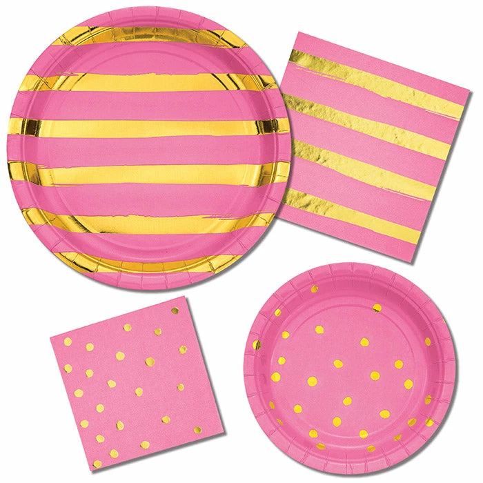 Details: Make your dining experience sublime with the addition of the Candy Pink and Gold Foil Striped Paper Plates. Beautifully designed, these dinner plates are a perfect contribution to make sure your party atmosphere is pristine. These party items measure 9″. With discount pricing, our Candy Pink and Gold Foil Striped Dinner Plates are perfect for event planners, caterers, and home hostesses alike. For this price, you get one package containing (8) Candy Pink And Gold Foil Striped Paper Plates. Approximate Dimensions: 8.75 in x 8.75 in