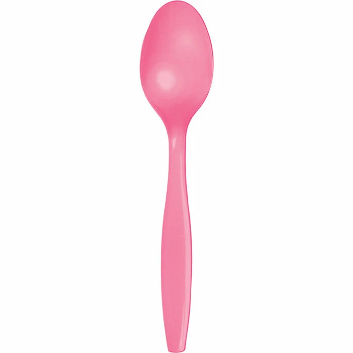 Details: The Candy Pink discount Plastic Spoons from our Touch of Color collection are an economical and convenient substitution for real stainless at large gatherings. Constructed from premium plastic in a pretty bubblegum pink shade that coordinates with all the Candy Pink party supplies, the discount package of sturdy plastic spoons is perfectly suited for use at weddings, corporate functions, family gatherings, or any special occasion that needs to accommodate a large guest list. The Candy Pink discount Plastic Spoons retail 50 pieces per package. For this price, you get one package containing (50) Candy Pink Plastic Spoons. Approximate Dimensions: 6 in
