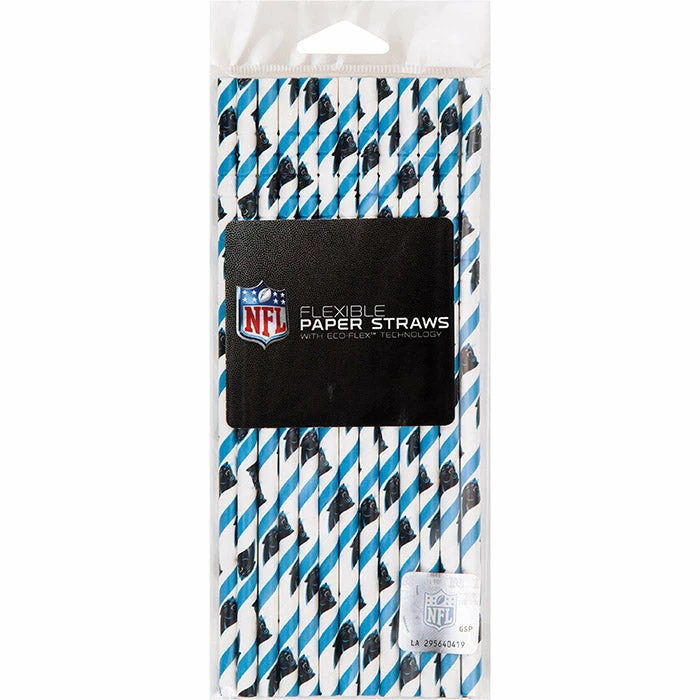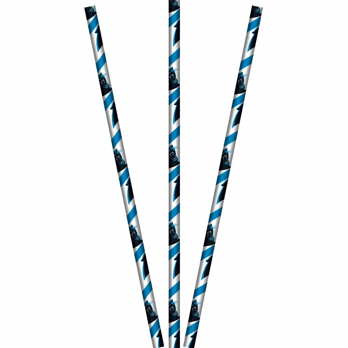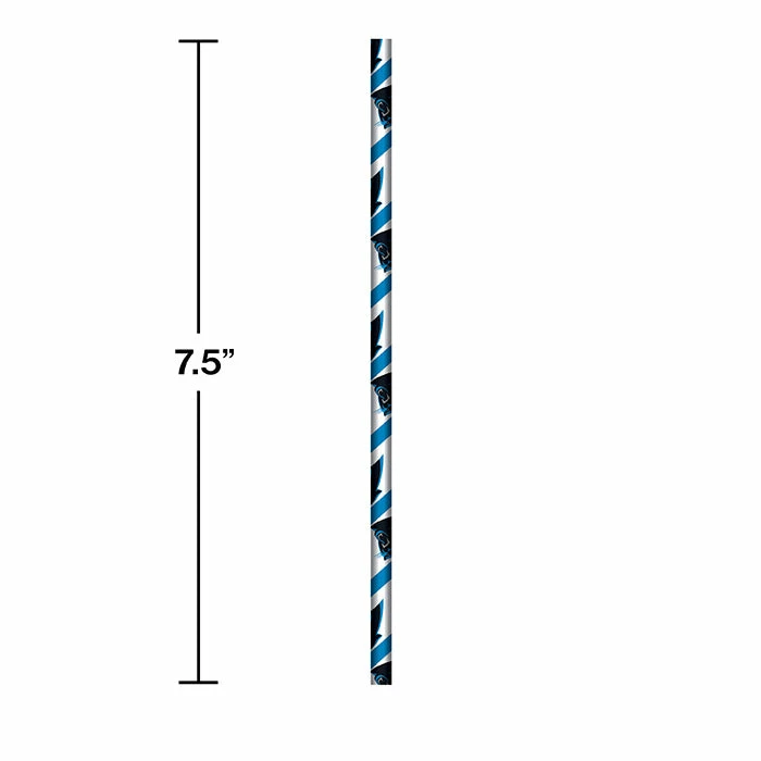Details: Amp up game day with our Carolina Panthers Straws. These paper straws are the perfect addition to our Carolina Panthers party supply collection. Fans will love to accent their beverages with these disposable straws. Featuring a striped design and team logo our paper straws are the perfect addition to tailgates and viewing parties. Approximate Size: 7.75″. Material: Biodegradable 100% Chlorine Free Paper