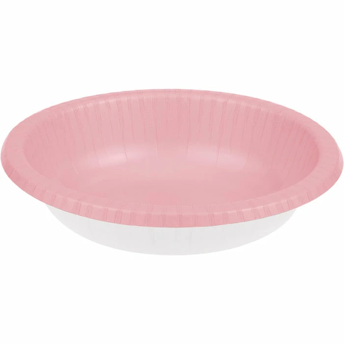 Details: Our Classic Pink Paper Bowls are a durable alternative to the real thing. Constructed of heavyweight paper, the disposable bowls feature a pre-scored rim for an attractive appearance perfect for bridal showers, baby showers, and birthdays of all ages. For this price, you get one package containing (20) Classic Pink Paper Bowls 20 Oz. Approximate Dimensions: 7.25 in x 7.25 in x 1.5 in