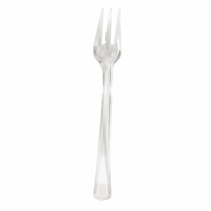 Details: Give any petite size party food an up-to-date accent with just the right size utensil when you set the table with Clear TrendWare Mini Forks! The crystal clear BPA free sturdy plastic forks measure just 4.125 inches long and feature 3 prongs for easy sampling and tasting of appetizers at events, dessert parties and more! Restaurants and deli counters will find these petite forks perfect for giving patrons samples before ordering while the average hostess will make a trend-setting fashion statement in tablescape design with this updated mini utensil. The Clear Mini Forks are sold 24 pieces per package. For this price, you get one package containing (24) Clear Mini Appetizer Forks. Approximate Dimensions: 4 in