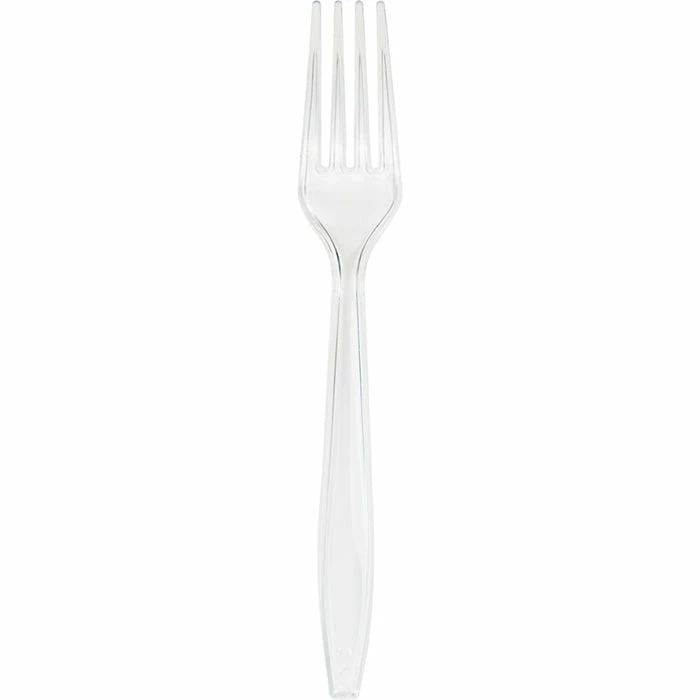 Details: Add a functional touch to buffets and dining tables by choosing our wholesale Clear Plastic Forks for your next social gathering, catered event or large celebration. These heavy duty plastic forks are the perfect combination of quality and convenience. Stylish and sturdy, these clear forks are disposable for easy clean-up after events. In addition to their excellent quality and design, this disposable cutlery is competitively-priced to offer significant savings for event planners, caterers, restauranteurs, and party hosts who need budget-friendly clear plastic cutlery. Pair these clear plastic forks with our other clear cutlery to create complete sets. For this price, you get one package containing (24) Clear Plastic Forks. Approximate Dimensions: 7 in
