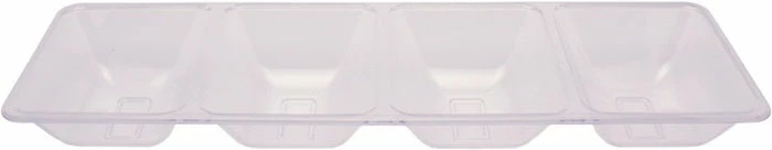 Details: When an event calls for elegance and function, consider purchasing the classy looking Clear Form & Function 4-Compartment Tray. Each clear plastic tray measures approximately 16.5 by 10.25 inches with each separated section just over an inch deep. This tray is perfect for filling with toppings for an elegant taco style meal, meat or fruit fondue, ice cream sundaes or salad bars. The possibilities are endless and guests will be impressed by the sturdy style and classy look. The disposable tray is perfect to use at buffets, catered banquets, receptions, reunions, continental breakfast service or cafeterias. Create elaborate displays with the Clear Form & Function 4-Compartment Tray which is sold at a discount price. You get one Clear Plastic Tray 16″ Divided for this price. Approximate Dimensions: 5 in x 15.75 in
