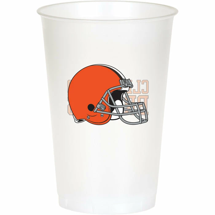 Details: Let our officially licensed tableware lead the charge at your next NFL themed event! The Cleveland Browns 20 Ounce Plastic Cups are a great addition to tailgating events retail store shelves and sports venues to excite any football fanatic. The clear cups are constructed of #6 recyclable plastic and printed with an image of the iconic orange helmet on one side and “Cleveland Browns” on the other. Fill the cups with your favorite cold beverage or even snacks such as popcorn for the ultimate fan experience. Cups are packaged in quantities of 8. Approximate Size: 20 oz. Material: #6 Recyclable Plastic