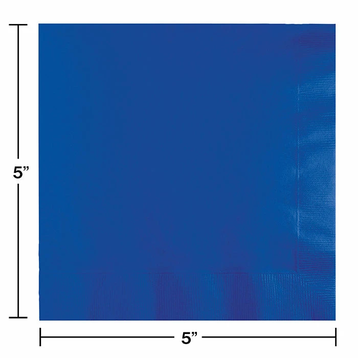 Details: Guests and patrons alike are sure to be impressed by the exceptional quality and enchanting color of our wholesale Cobalt Blue 2-Ply Beverage Napkins. These cobalt blue beverage napkins are essential party supplies that no party should be without. These cobalt blue paper napkins are very soft, thick and absorbent. Use these cocktail napkins for holding glasses, protecting tabletops in lieu of coasters and cleaning up spills. Event planners, caterers, restaurant owners and savvy party hosts will appreciate the premium quality and affordability of our cobalt blue napkins. Use these cobalt blue cocktail napkins with our other disposable dinnerware for an extra vibrant look. For this price, you get one package containing (200) Cobalt Beverage Napkin 2Ply. Approximate Dimensions: 5 in x 5 in