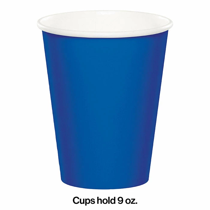 Details: Keep your guests hydrated and cool by serving with these Cobalt Blue Cups. The hot/cold cups hold up to 9 oz making it easy to serve a nice cold glass of lemonade on a hot summer day or a warm hot chocolate during the frigid winter. This item looks great with our other Cobalt Blue party supplies. With discount pricing, our Cobalt Blue 9 oz Hot & Cold Cups are perfect for event planners, caterers, and home hostesses alike. For this price, you get one package containing (8) Cobalt Hot/Cold Paper Cups 9 Oz.