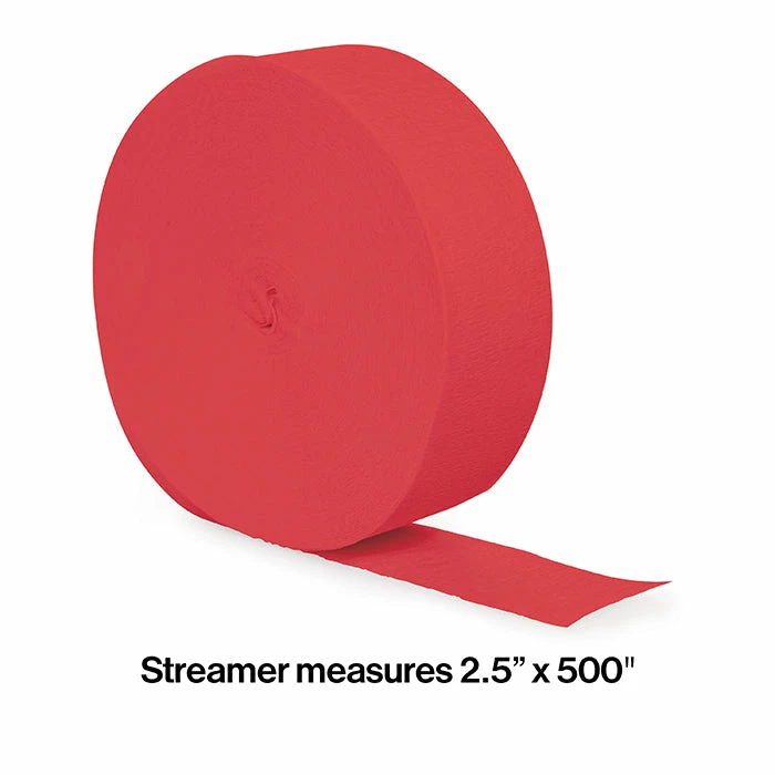 Details: Balance the venue decorations with trendy colored Coral Crepe Streamers twisted and hung from ceilings, lighting, trellises, railings and table edges. The beautiful pink-coral makes a wonderful statement at wedding receptions, bridal showers or a seaside dining establishments and rolls are individually package for convenient storing and usage. Mix three coordinating colors of streamers and twist together for a striking decorative appearance. You get one Coral Crepe Streamers 81′ for this price. Approximate Dimensions: 81 ft x 1.75 in
