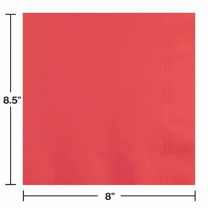 Details: Bring a stylish and elegant touch to your next celebration with these Coral Dinner Napkins. Made with facial quality tissue, the solid color napkins feature a 1/4 fold design, making them a wonderful choice to add along with your tableware items.These dinner napkins look great next to our other Coral party supplies. With discount pricing, our Coral Dinner Napkins 3 Ply are perfect for event planners, caterers, and home hostesses alike. For this price, you get one package containing (25) Coral Dinner Napkins 3Ply 1/4 Fld. Approximate Dimensions: 8.5 in x 8 in