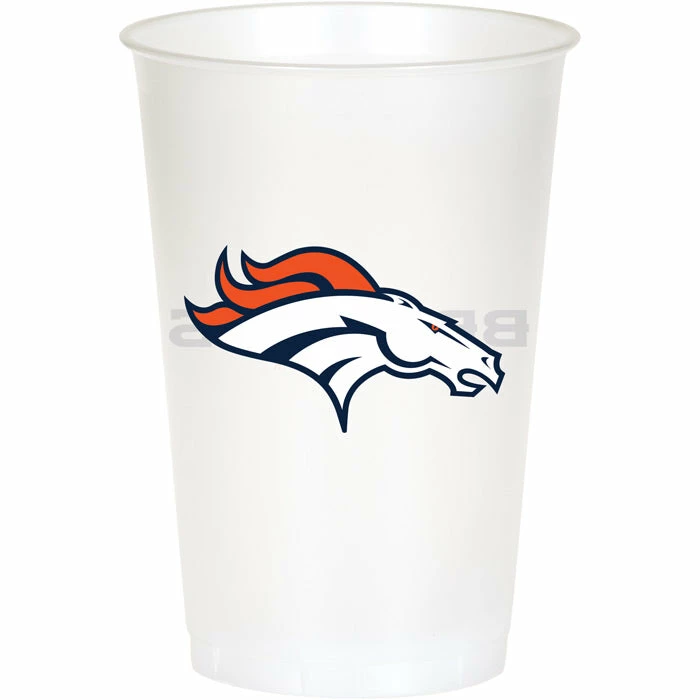 Details: Cold drinks served in officially licensed NFL tableware will be enjoyed by fans during game day celebrations anywhere. The Denver Broncos Cups are constructed from #6 recyclable plastic and feature a “Broncos” headline as well as the fearsome team logo with blue and orange accents. Disposable cups hold up to 20 ounces and can be used for beer soda and team inspired specialty cocktails at indoor and outdoor events. Cups arrive in retail-ready packaging of 8 each. Approximate Size: 20 oz. Material: #6 Recyclable Plastic